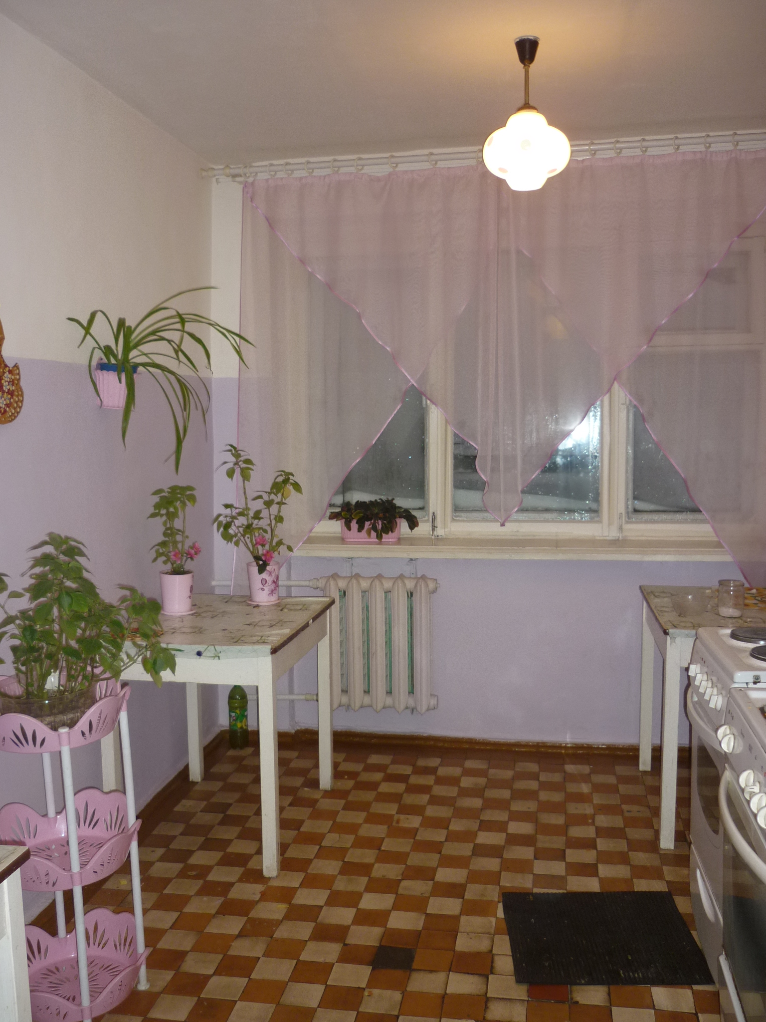 В каждой кухне имеется по 1-2 электрической плиты, микроволные печи, 1-2 раковины, столы, мусорный бак. На каждом этаже имеются холодильники.