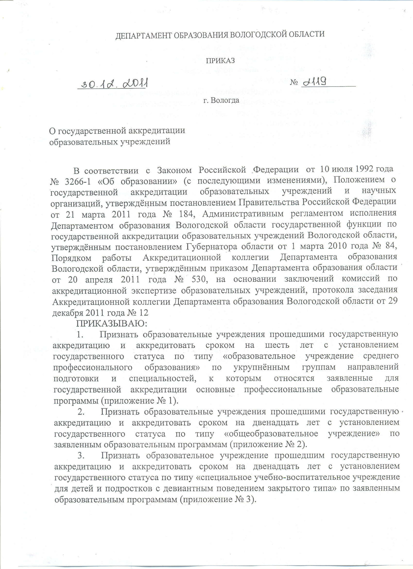 Приказ о государственной аккредитации